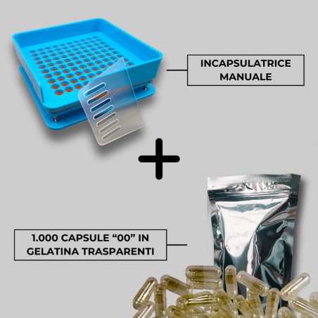 incapsulatrice manuale + 1000 capsule in gelatina animale tipo "00"